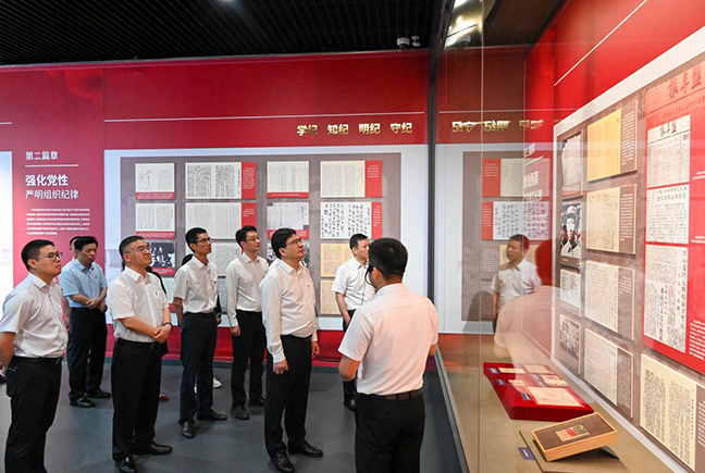 展覽透過一個個生動的案例,圍繞“擎旗抗戰(zhàn) 嚴明政治紀律”“強化黨性 嚴明組織紀律”“激濁揚清 嚴明廉潔紀律”“心系人民 嚴明群眾紀律”“建章立制 嚴明工作紀律”“立德立言 嚴明生活紀律”“所向披靡 奪取抗戰(zhàn)勝利”等七個篇章,生動展現了新四軍堅定崇高的信仰、守紀如鐵的作風、嚴于律己的風范、懲治腐敗的決心、親民愛民的情懷和艱苦奮斗的精神。集團領導班子認真聽取講解介紹,用心學習體悟,表示將嚴格對照“六項紀律”,在學紀知紀明紀守紀上下功夫,在以學促干上持續(xù)用勁,把深化黨紀學習教育同貫徹落實省市委全會部署要求、抓好當前各項工作結合起來,以實干實績實效為鹽城高質量發(fā)展大局多作貢獻。